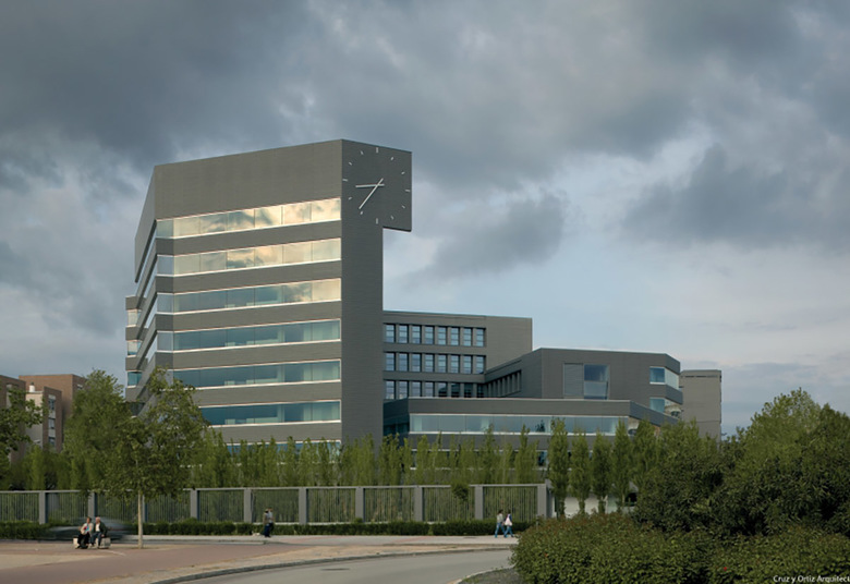 El solar elegido aparecía rodeado por edificios residenciales al oeste, un gran centro comercial al sur, aún otro supermercado al norte y unas obras eternamente inacabadas al este. Dicho de otra forma, el propósito de la administración pública era exactamente el intentar recalificar el sector a través de la presencia del nuevo edificio, lo que sin duda podía ser una buena opción en términos urbanísticos pero constituía al mismo tiempo una seria dificultad para concebir el edificio, privado de cualquier referencia próxima o cualquier dato urbano positivo al que aludir.