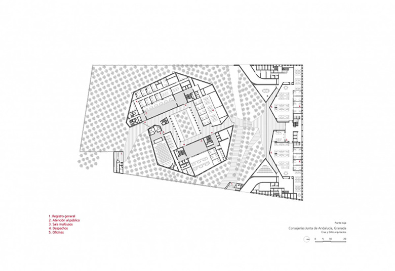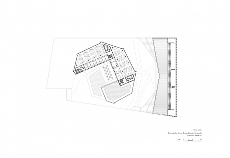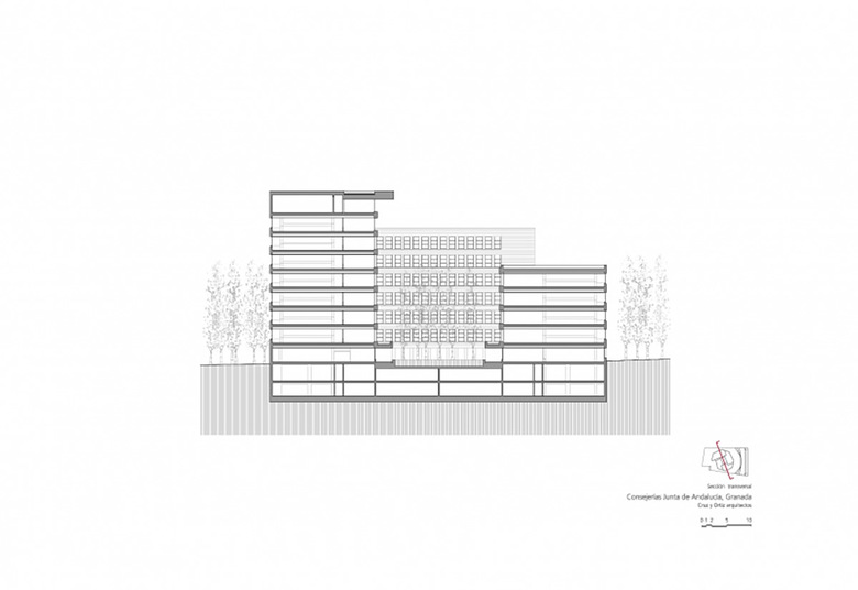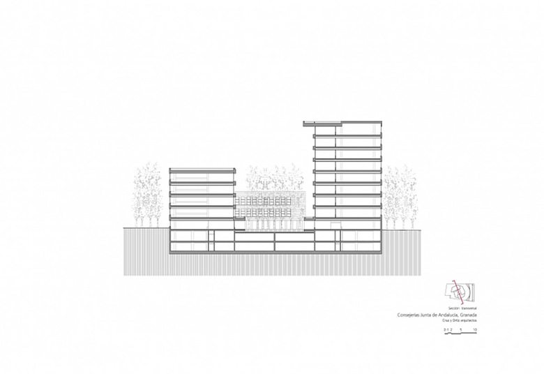 La zona elegida para erigir la sede administrativa de la Junta de Andalucía en Granada, el polígono Almanjayar, no contribuía en absoluto a definir la forma o la organización que el edificio debía tener.