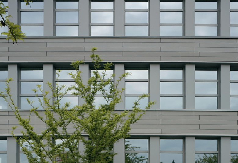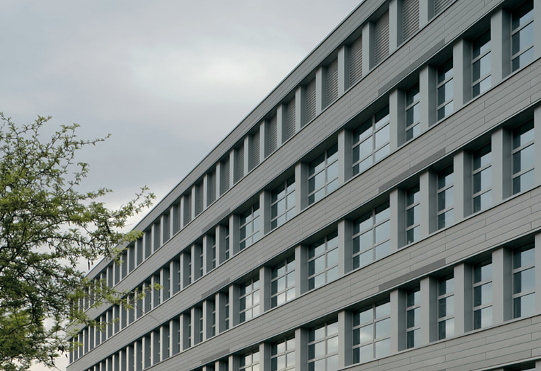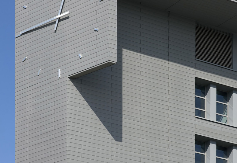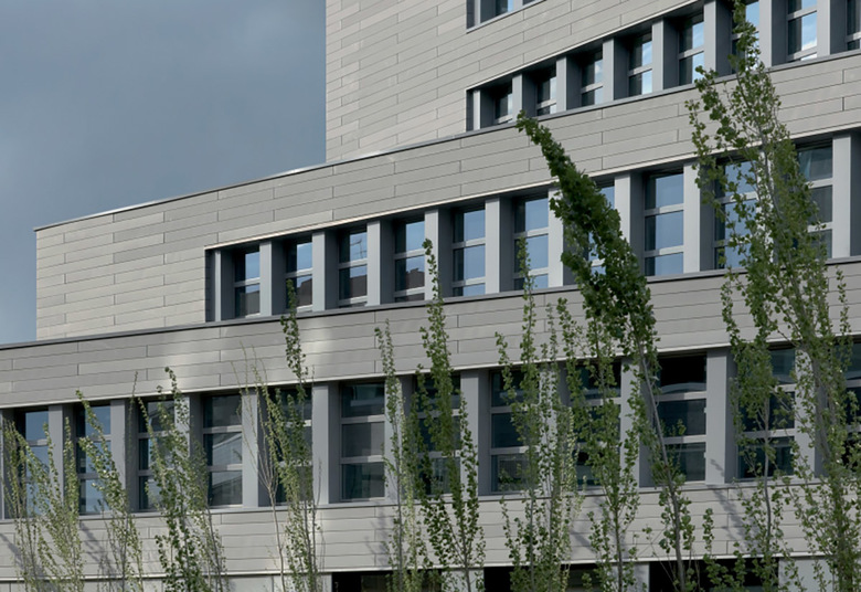 Las fachadas de ambos edificios han sido revestidas de placas de zinc y el conjunto es muy monocolor, en un gris que le distingue claramente de las edificaciones vecinas. Este afán por singularizarse ha llevado a instalar un gran reloj en el punto más alto del conjunto pretendiendo con ello afirmar y subrayar la dignidad de lo público en una zona de carácter tan periférico.