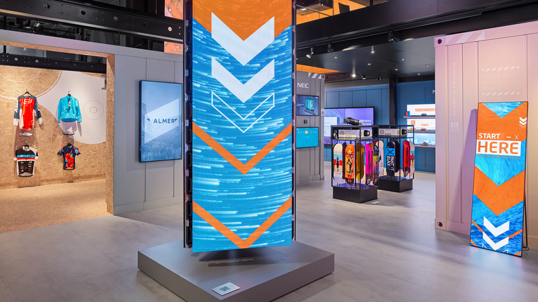 Durch echte Produkte aus dem Fashion- und Sportbereich werden Shopsituationen so real wie möglich dargestellt. Dadurch erklären sich den Besuchern Funktion und Nutzen der NEC-Lösungen direkt am POS.