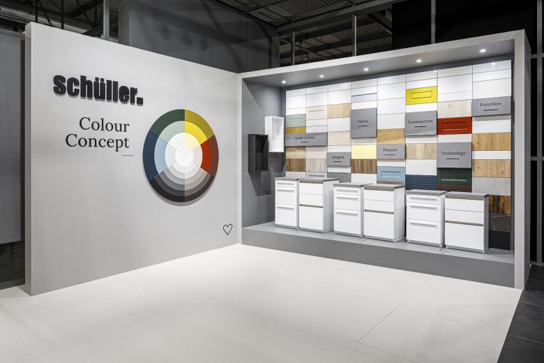 Im Kontrast dazu ist die große Vielfalt der Handelskollektion von Schüller in ein helles, wohnliches Umfeld getaucht, die Kommunikationskampagne setzt mit farbigen Collagen Akzente. Ergänzend zu den Küchenlinien werden zahlreiche Möbelsysteme für die Bereiche Wohnen und Arbeiten gezeigt, bis hin zum funktionalen Hauswirtschaftsraum. Das offene Kojenkonzept des Standes lässt die Besucher wie in die eigene Wohnwelt eintauchen und bietet gut gestaltete Lösungen für fast alle Lebens(t)räume.