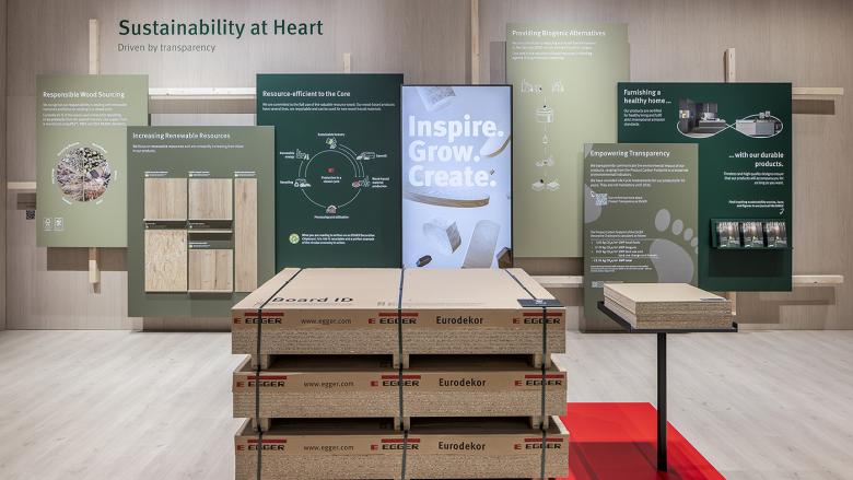 EGGER bekennt sich ausdrücklich zu nachhaltigem Handeln und Wirtschaften. Auf dem Interzum Messestand informiert der ausschließlich dafür vorgesehene Sustainibility Walk über die Nachhaltigkeitsstrategie und umfangreichen Aktivitäten des Unternehmens.