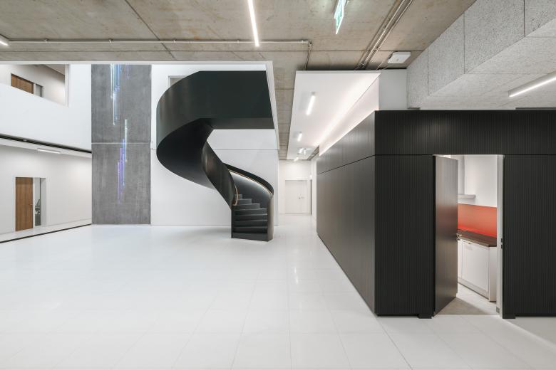 Im Nordosten des Forschungscampus in Hamburg-Bahrenfeld, am Übergang zwischen Luruper Hauptstraße und Luruper Chaussee, entsteht das Innovationszentrum „Start-up Labs Bahrenfeld“. Mit dem Innovationszentrum wird ein Gemeinschaftsprojekt von DESY, der Universität Hamburg und der Freien Hansestadt Hamburg realisiert, das Gründern und jungen Unternehmen aus wissenschaftlichen Forschungsfeldern anmietbare Flächen mit der nötigen Infrastruktur zur Verfügung stellt, um beste Voraussetzungen für den Wissenstransfer sowie die Herstellung neuer innovativer Produkte zu schaffen. Der viergeschossige Baukörper beherbergt kleinteilig vermietbare Büroflächen in einer kommunikativen Raumstruktur sowie komplexe Labor- und Werkstattbereiche. Der helle Eingangsbereich mit seinem Glasdach erstreckt sich über alle Ebenen und bildet mit seiner prägnanten schwarzen Wendeltreppe und der Lichtinstallation das Zentrum des Baukörpers. Die offene, an den Eingangsbereich anschließende Cafeteria integriert, ebenso wie weitere halböffentliche Bereiche, ein taktiles Leitsystem, das die Ansprüche von Blinden und seheingeschränkten Menschen berücksichtigt. Als Fassadenmaterial wird in Metalloptik beschichtetes Aluminiumblech gewählt, das je nach Tageszeit und Sonnenstand sein Erscheinungsbild ändert. Die großzügige Glasfassade im Nordosten wird durch weiße Betonsteine gerahmt. Durch den prägnanten Versatz entsteht ein überbauter, kommunikativer Raum, der sich zur Luruper Chaussee öffnet und ein weithin sichtbares Zeichen am Kreuzungspunkt mit der Stadionstraße setzt.