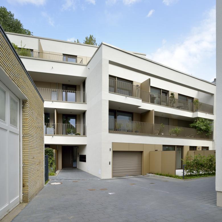 Bei der Bauaufgabe handelt es sich um eine Neustrukturierung des Geländes an der Lessingstraße im Hamburger Stadtteil Hohenfelde. Diese umfasst u.a. die Sanierung und Umnutzung der denkmalgeschützten Tankstelle aus den 50er-Jahren sowie die Realisierung eines dreigeschossigen Wohnungsneubaus mit Staffelgeschoss. Nach engen Abstimmungen mit dem Denkmalschutzamt werden die vorhandenen Grundstücke vereint und anschließend in drei Flurstücke neu aufgeteilt. Die historische Tankstelle mit seinem weit auskragenden Vordach auf einer Rundstütze wird nach ausführlichen restauratorischen Untersuchungen denkmalgerecht saniert und zu einem „Studioloft“ für eine Verbindung aus Wohnen und Arbeiten umgenutzt. Dabei stehen der vollständige Erhalt des äußeren Erscheinungsbildes sowie das Herausarbeiten wertvoller Details aus den 50er-Jahren im Vordergrund. Der nicht denkmalgeschützte Gebäudebestand sowie die Werkstätten im hinteren Bereich des Grundstücks werden abgebrochen und durch einen dreigeschossigen Wohnungsneubau ersetzt. Der Baukörper mit seinen 12 Eigentumswohnungen nimmt die Flucht des Nachbargebäudes auf und positioniert sich in zweiter Reihe zwischen Tankstelle und der noch vorhandenen Remise. Die vorwiegend dreigeschossige Hofbebauung wird fortgeführt und durch ein Staffelgeschoss mit großzügigen Dachterrassen ergänzt. Die Kubatur des Neubaus öffnet sich zur Tankstelle und stellt die gewünschten Sichtbeziehungen her. Aus Rücksicht auf das denkmalgeschützte Umfeld wird eine zurückhaltende Fassadengestaltung umgesetzt. Die Materialität orientiert sich an den vorherrschend umgebenen Putzbauten und wird mit Fassadentafeln zwischen den Fenstern kombiniert. Gartenseitig werden die noch vorhandenen Remisestrukturen in das Freianlagenkonzept von GHP Landschaft integriert und lassen ein ausgeglichenes Gesamtgefüge aus Alt und Neu entstehen.