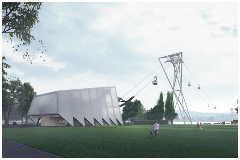 Temporäre Seilbahn mit 18 Fahrkabinen quer über das Zürcher Seebecken