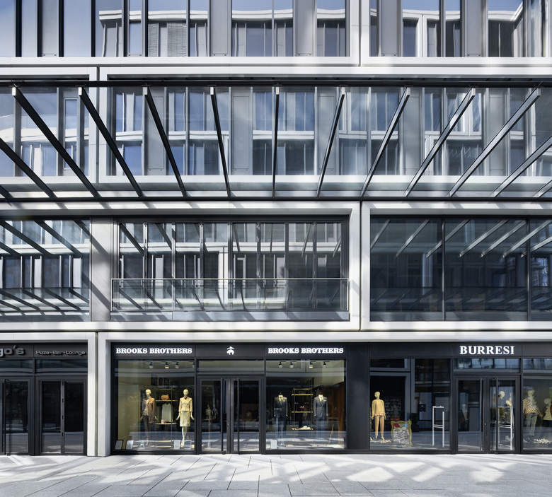 Die beiden Büro- und Geschäftshäuser mit der Adresse Neue Mainzer Straße 74 und 80 markieren den Eingang zur Neuen Rothofstraße, die parallel zur ersten Einkaufsadresse Frankfurts, der Goethestraße, verläuft.