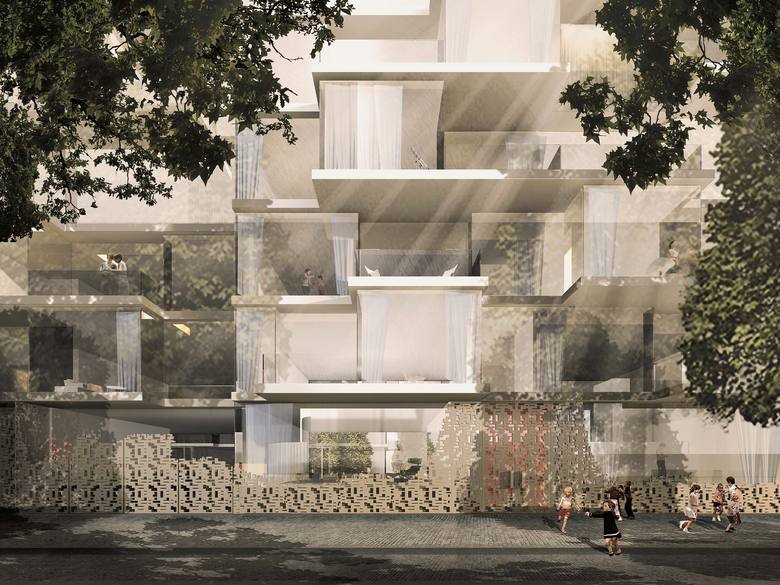 Unter dem Gesichtspunkt des Städtebaus betrachtet, handelt es sich bei diesem Projekt um eine klassische, für Berlin sehr typische Blockrand- und Blockinnenbebauung. Die fünf etwa gleichen, aufgrund ihrer Architektur vereinten Wohnhäuser – drei vorne, zwei hinten – liegen an einer der Seitenstraßen südlich des oberen Kurfürstendamms. Von den höheren Geschossen der Vorderhäuser schweift der Blick über die flachen Nebenbauten zur Mitte eines berühmten Ensembles der späten 1920er-Jahre: Erich Mendelsohns Kino Universum, das heutige Theater Schaubühne am Lehniner Platz.