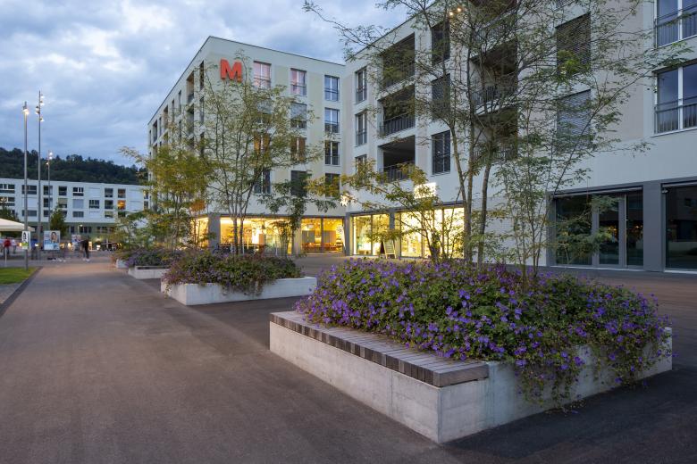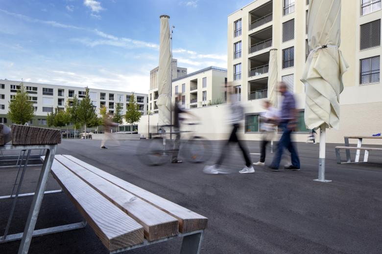 Zudem werden in der weiteren Umgebung Wohnungen im Grünen gebaut. Die Gestaltung dieser Freiflächen orientiert sich an den umliegenden Siedlungen und nimmt Elemente wie Gartenzäune, Nutzgärten oder Kleinbäume auf. So entstehen vielfältige Aufenthalts- und Begegnungsorte für die Bewohnerinnen und Bewohner und ihre Gäste.