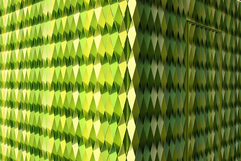 Diese WC Anlage, die wir für die Stadt Uster entwickelt haben, ist ein Prototyp für eine neue Typologie von öffentlichen WC Anlagen, die an verschiedenen Orten der Stadt installiert werden können. Durch das Parametrische Design der Fassade kann diese je nach Standort in ihrer Farbigkeit und Dimensionierung auf die Umgebung Bezug nehmen. Die Fassade besteht aus abgekanteten, mehrfarbig pulverbeschichteten Aluminiumblechstreifen. Durch die Tiefenwirkung der Faltung und die unterschiedliche Farbe der einzelnen Streifen entsteht eine changierende Oberfläche, die je nach Sonnenstand und Blickwinkel ein unterschiedliches Fassadenmuster ergibt.