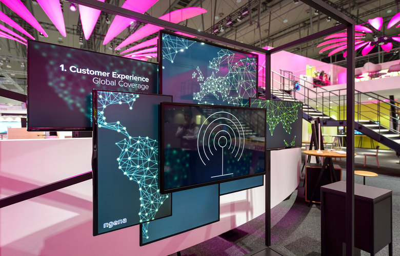 Drei unterschiedliche Präsentationsmodi – geführt, selbstlaufend, Imagefilm – visualisieren ngena auf einer faszinierenden Multiscreen-Installation.