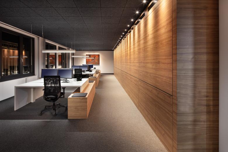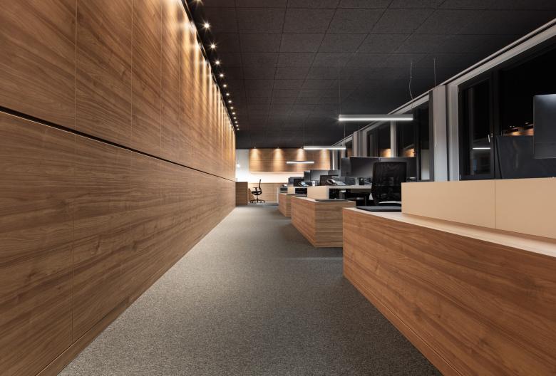 Der gesamte Innenausbau inkl. Akustikdecke, Einrichtungsmaterialien und Möbel wurden nach den individuellen Anforderungen der Technik und Funktionalität in kürzester Zeit geschmackvoll umgesetzt.