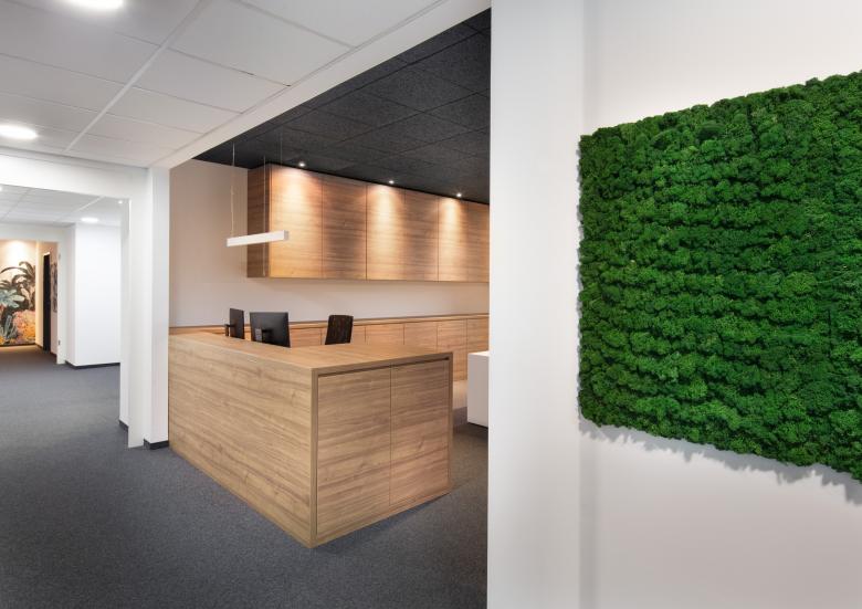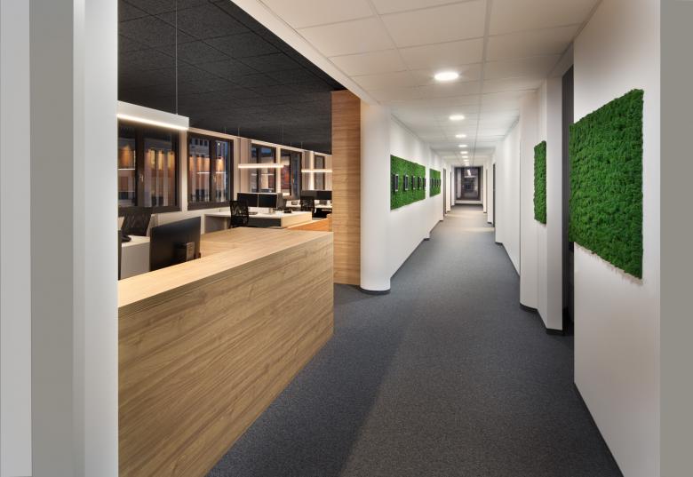Der Aufenthaltsbereich sowie der gesamte Arbeitsbereich inklusive Flur des Firmensitzes der Steuerkanzlei Maier in Stuttgart sollten definiert und individuell gestaltet werden. Die Schlagworte frisch, dynamisch, bodenständig aber wertig sollten sich in der Architektur wiederspiegeln.