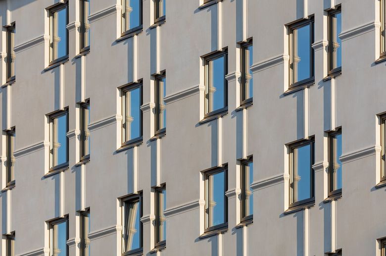 „Die Kunst der Fuge“ – Ein in unmittelbarer Nachbarschaft zum Münchner Hauptbahnhof gelegenes Verwaltungsgebäude aus den 50er Jahren, das zuletzt neben Imbissen und Billigläden unter anderem das Drogendezernat der Stadt beherbergt hatte, musste aufgrund seiner Baufälligkeit abgerissen werden. Der an seiner Stelle errichtete, von Hild und K Architekten im Auftrag der Bayerischen Hausbau GmbH & Co.KG geplante Neubau schließt die Blockrandbebauung an der Ecke zwischen Bayer- und Goethestraße erneut. Wer den Bahnhof nach Süden hin verlässt, läuft nun direkt auf das achtstöckige Hotel mit Gastronomie und Lobby im Erdgeschoss zu. Als Blickfang fungiert vor allem dessen ungewöhnliches Fassadenrelief. Das Gestaltungsprinzip, dem dieses folgt, lässt sich mit Andreas Hild, Dionys Ottl und Matthias Haber augenzwinkernd als „Kunst der Fuge“ bezeichnen.