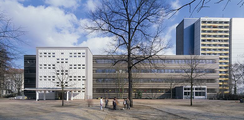 Zwei Schulen der Typenserie SK-Berlin aus den 1960-iger Jahren erhielten eine innovative Fassade aus farbig eloxierten Aluminium-Hohlprofilen. Die Bernhard-Rose-Schule, (ursprünglich Axel-Wedding-Oberschule) wurde 1965-66 als Prototyp der Reihe SK-Berlin von Gerhard Hölke erbaut. Der Schulbau und auch die benachbarte Blumen-Grundschule sind weitgehend erhalten und wurden vom Bezirksamt Friedrichshain-Kreuzberg als denkmalwürdig eingestuft. Ein gestalterisches Ziel der Sanierung war daher der Erhalt wesentlicher Merkmale der ursprünglichen Plattenbauten und die ablesbare Gestaltung der neuen “Haut”. Die Baukörper behielten ihre Identität und bleiben auch für spätere Generationen als Zeitzeugen erhalten.