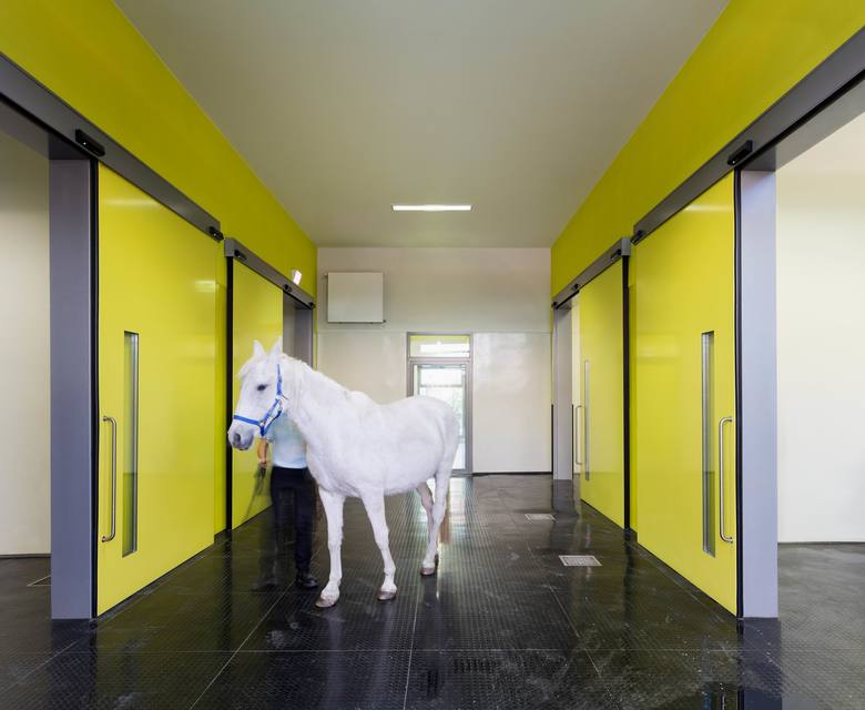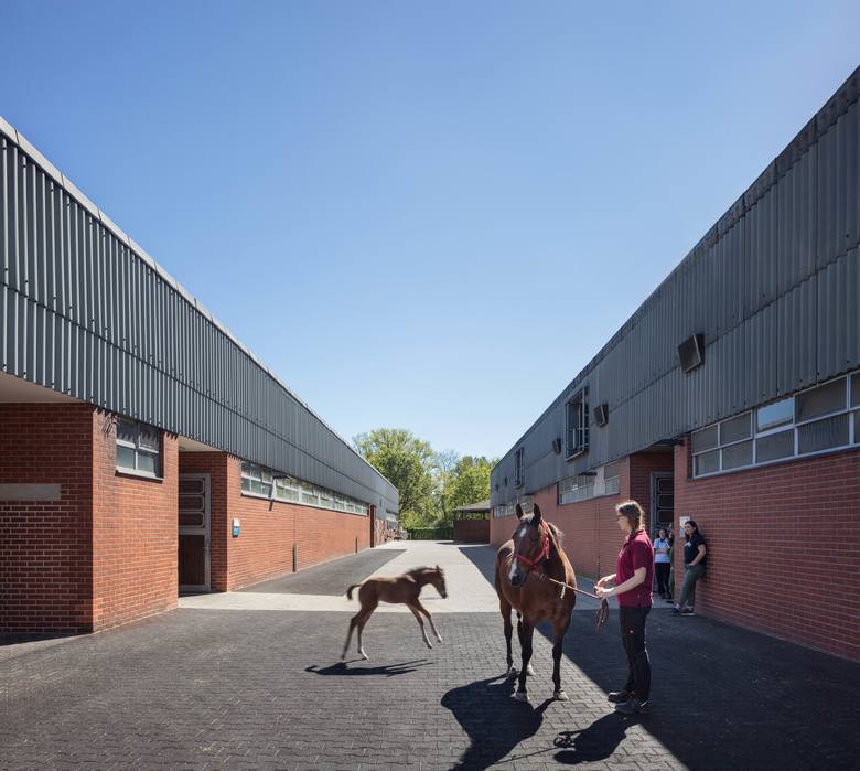 Die Architekten passten die Klinik- und Lehrgebäude an aktuelle medizinische Anforderungen an. Spezifisch zugeordnete Nutzungsbereiche mit eigenen Eingängen organisieren das Zusammenspiel zwischen moderner Lehre und Forschung sowie intensiver klinischer Betreuung der Pferde privater Eigentümer. Die Studierenden erwerben wertvolle Praxis im laufenden Klinikbetrieb.