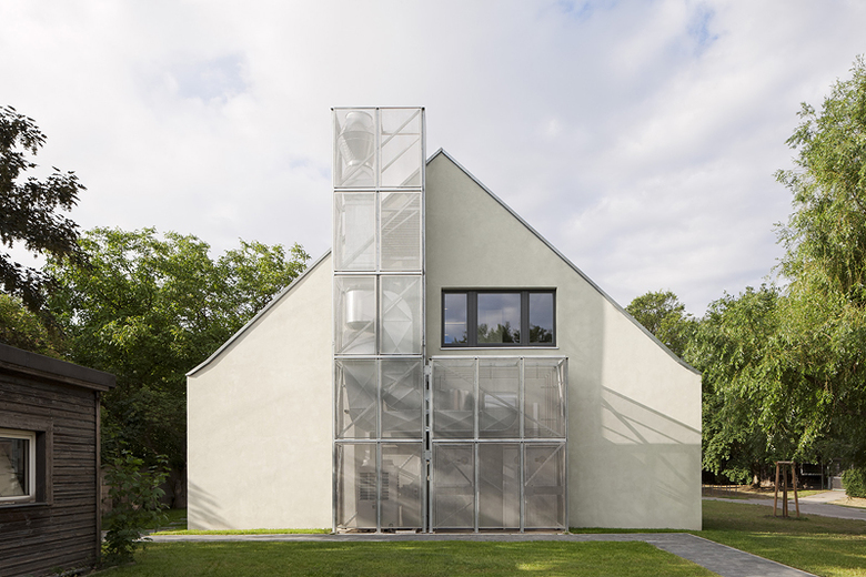 Der Umbau des Gebäudes mit seiner prominenten Lage an der Kreuzung Königin -Luise - Straße und Pacelliallee integriert die veterinärmedizinischen Forschungseinrichtungen der FU auf dem denkmalgeschützten Ensemble der Domäne Dahlem. Die Ausrichtung des Seminarraums zur Pacelliallee und vergrößerte Fensteröffnungen vor den Laboren machen die umfangreiche Labornutzung ablesbar. Der südliche Giebel öffnet sich mit einem großen Fenster zum Eingang der Domäne Dahlem und wirbt für die neue Einrichtung einer öffentlichen Ernährungsberatung für Tiere. Über Farb- und Materialwahl entsteht ein offenkundiger Bezug zum alten Gutshaus, dem Hauptgebäude der Domäne.