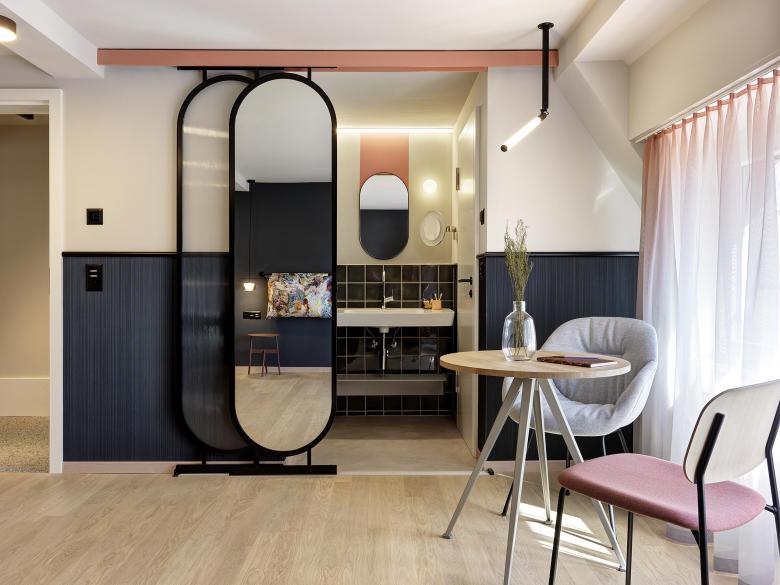 Umbau eines Jugendstil Gebäude, es entsteht ein einzigartiges Boutique Hotel im 3* Superior Bereich. Hauptthema unserer Innenarchitektur ist die Mode- und Kunstszene in St. Gallen. Ein kräftiges Farbschema und eine gemütliche Sitzecke schaffen eine warme Raumatmosphäre in den Hotelzimmern. In den künstlerischen Dach-Suiten befindet sich eine Wand mit Originalmustern, Skizzen und Stoffmustern der Designerlabels Jakob Schläpfer und Christian Fischbacher. Die Lobby ist eigentlich ein Wohnzimmer mit einem modernen Wandbild, das stilisierte Motive aus einer historischen Geschichte zeigt.