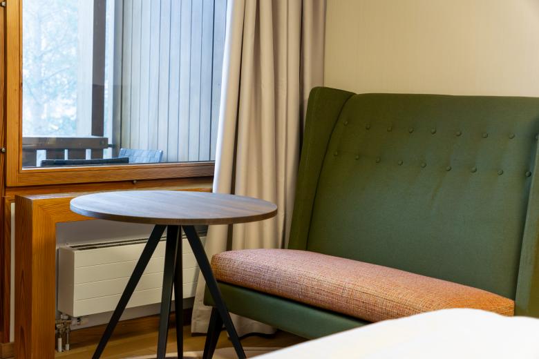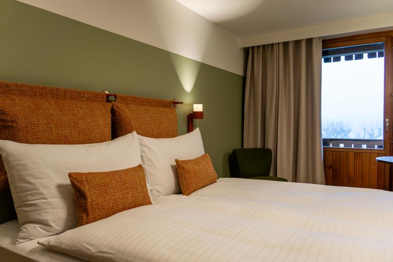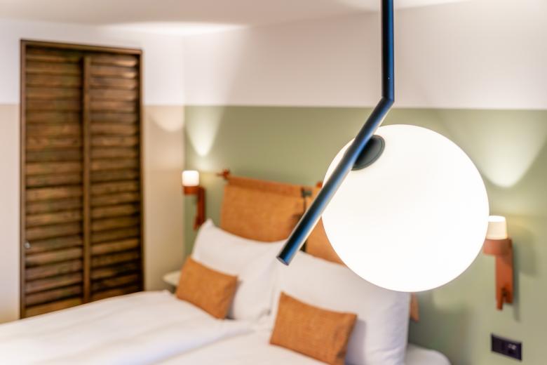 Renovation von Hotelzimmern. Die von uns vor 18 Jahren gestalteten Hotelzimmer haben wir erneut zeitgemäss renoviert. Zeitgemäss bedeutet kein Schreibtisch mehr sondern eine gemütliche homy Sitzecke, eine stylishe Möblierung mit Möbeln von Designers Guild, Moooi Carpets, Leuchten von Flos und Luxcambra und diversen eigenen Entwürfen, wie auch die Holzstoren fürs Bad.