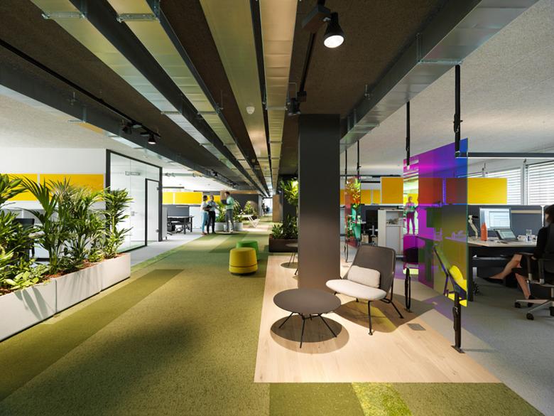 Inspiration für das räumliche Konzept ist der New Yorker Central Park mit der angrenzenden Upper East und West Side. Der Park, eine Kommunikations-, Kollaborations- und Erholungszone mit mäanderartigem Raumfluss bietet eine Vielzahl an Funktionen – Lounges, Küchenzonen, Kaffeebars, Besprechungs- und Fokusräume stellen nur einen Bruchteil der Angebote dar.
