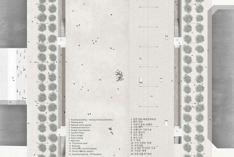 Ten Issues and Tasks on Gwanghwamun Square Gwanghwamun Square has been the mirror of the transformation of Seoul’s cityscape and its urban morphology and landscape construction over the past 50 years. Based upon the perspective of cultural geo-graphy, this project proposes a particular solution on what is generally considered as open, “Purposeless” space.