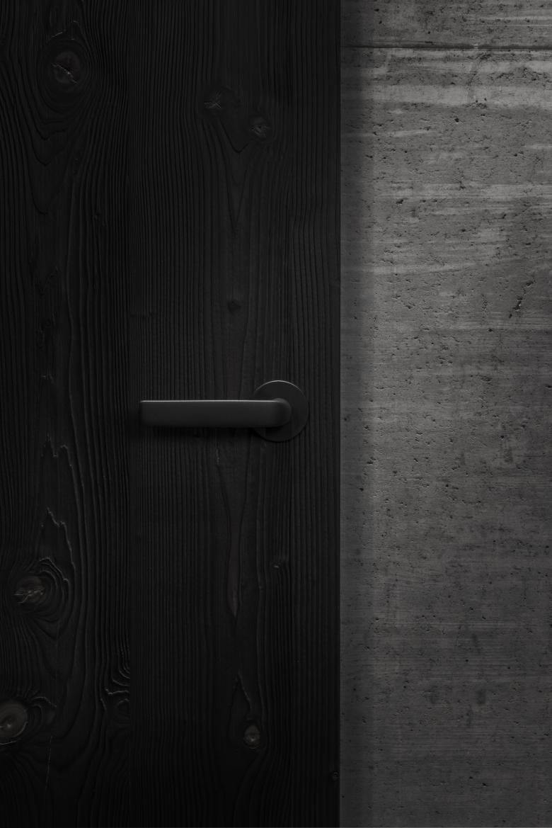 Im WC-Waschraum sowie im gesamten Neubau überwiegen klare Formen und dunkle Töne.