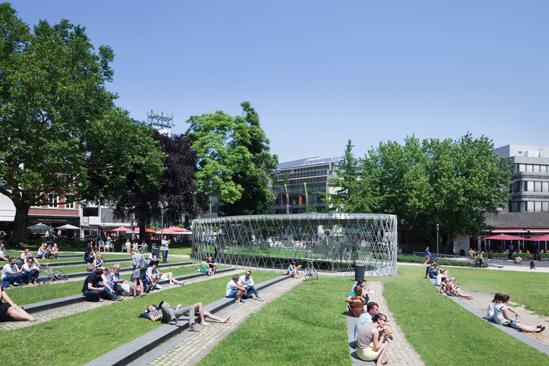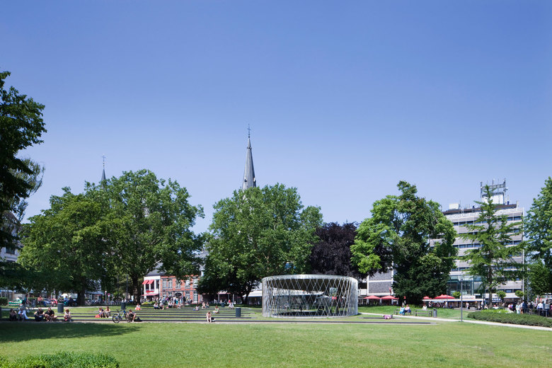 BRIEF: Einhausung für die im Elisengarten entdeckten Funde aus rund 5000 Jahren Siedlungsgeschichte als eines von fünf ‚Archäologischen Fenstern‘ in der Stadt Aachen.