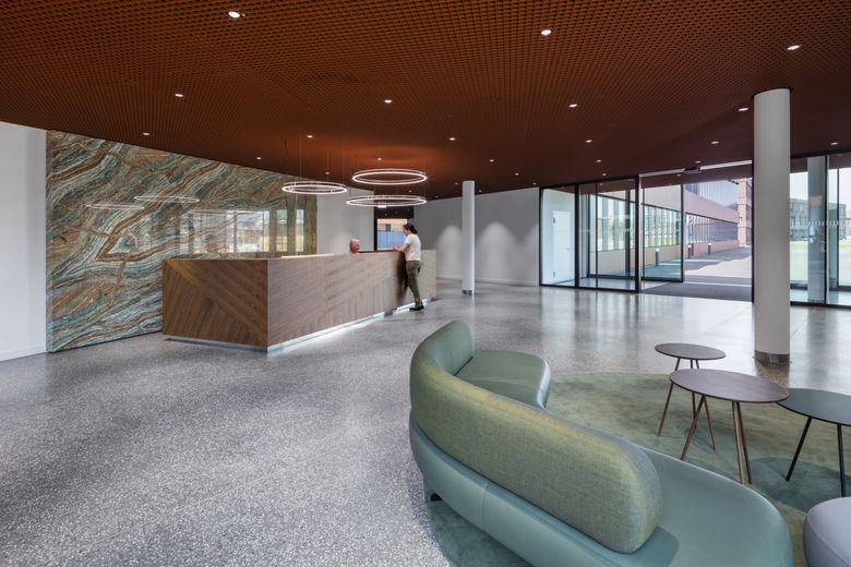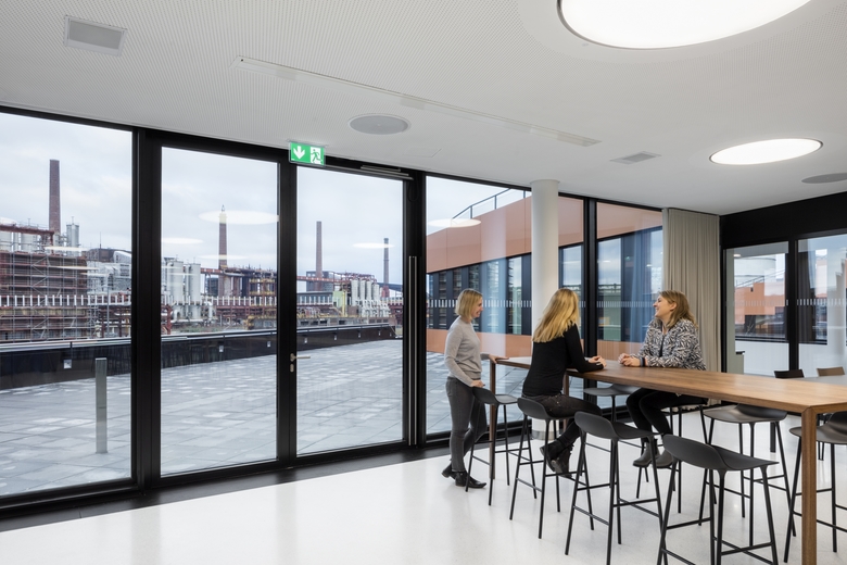 Das neue Verwaltungsgebäude von RAG-Stiftung und RAG AG liegt auf dem UNESCO-Welterbe Zollverein in Essen. Westlich des ikonischen Zechenturms und vis-a-vis der mächtigen ehemaligen Kokerei gelegen, schließt es die Ecke des Terrains am Übergang zum angrenzenden Waldstück.