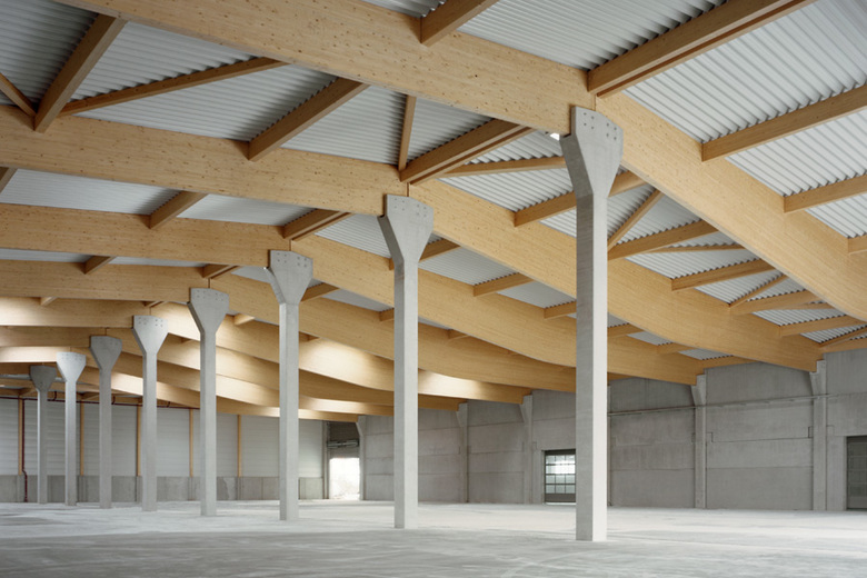 Die Fahrzeug- und Lagerhalle hat eine Grundfläche von 75m x 62,5m und ist für eine Lagerhöhe bis 7,5m ausgelegt. Der Hauptteil der Halle ist als eingeschossiger offener unbeheizter Lager- und Logistikbereich für 40 Kolonnenfahrzeuge geplant. In Verlängerung des bestehenden Bürogebäudes ist der Baukörper zweigeschossig mit der temperierten Spenglerei im Erdgeschoss und den Umkleide- und Sanitärräumen für die gewerblichen Mitarbeiter, sowie einem großen Pausen- und Versammlungsraum im Obergeschoss.