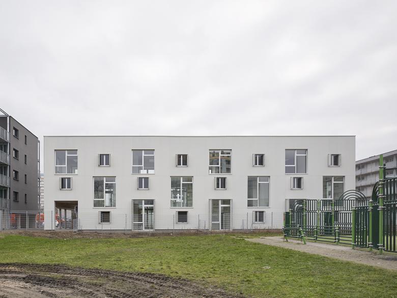 Dieser kleine soziale Wohnungsbau ist Teil eines von der SOMCO in Auftrag gegebenes Ensembles in Strasbourg-Neuhof, inmitten einer heterogenen, von Großwohungsbauten dominierten Nachbarschaft.
