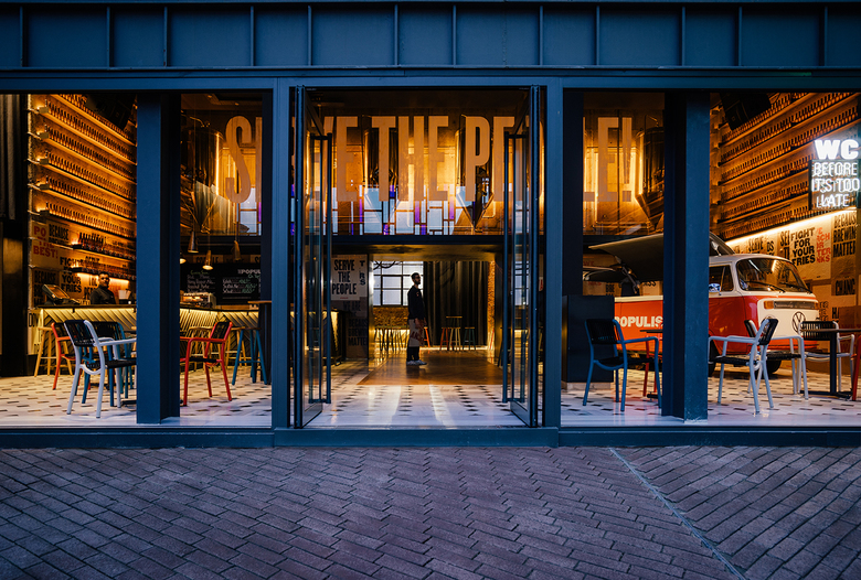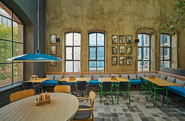 Almost 2.000 square meters of the very first Turkish brewery released in Istanbul by the Bomonti brothers one hundred years ago have been rehabilitated. Turned into a craft brewery and a large restaurant, The Populist aims to recall the disobedient atmosphere lead and created by the crowds against political issues.