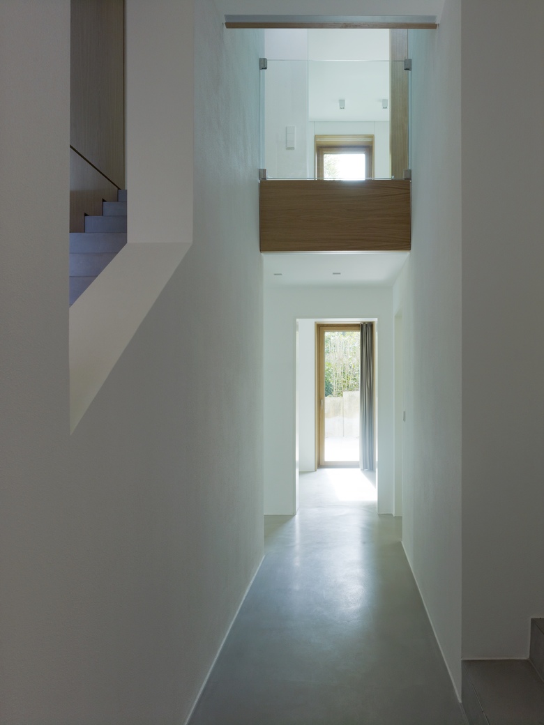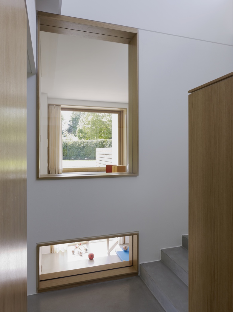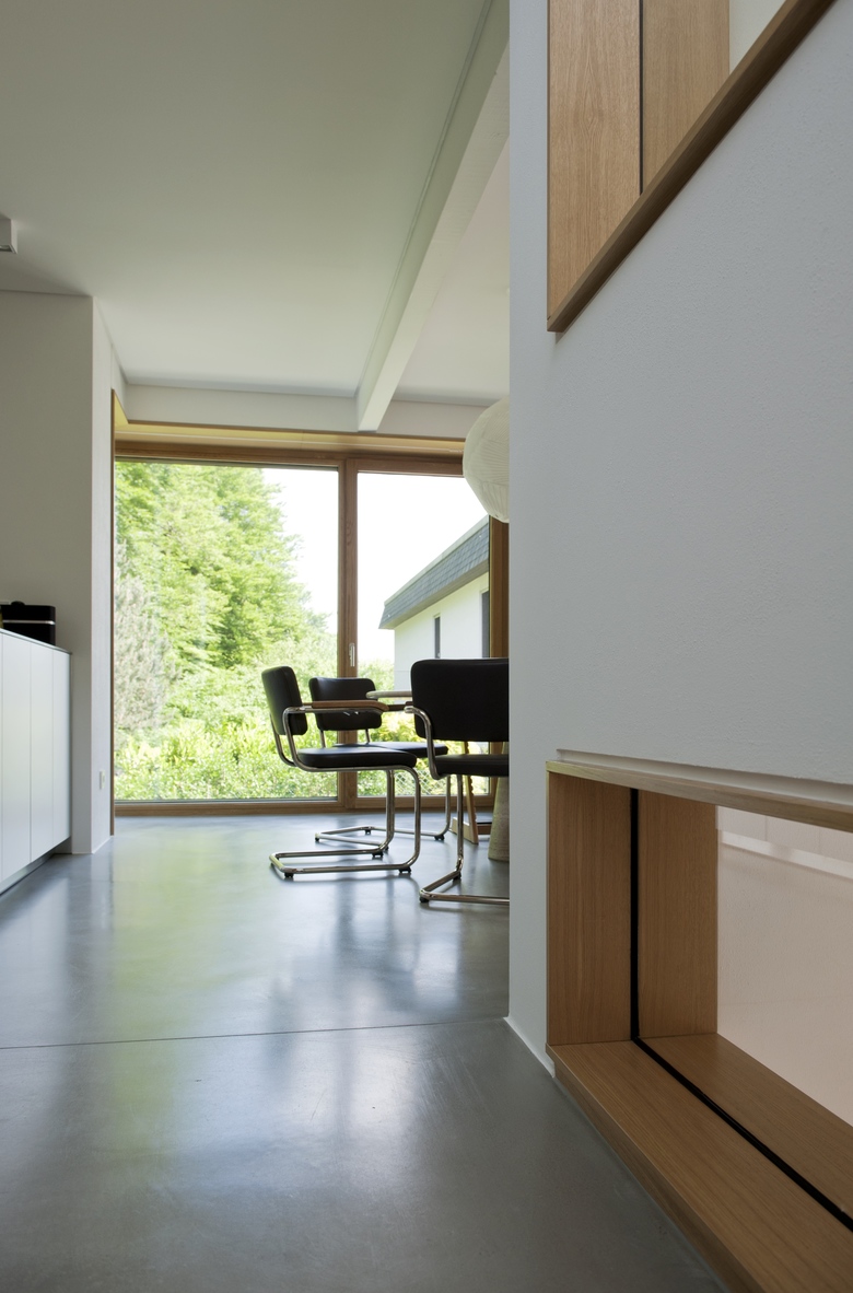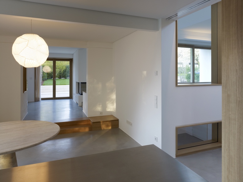 Kellerräume wurden zum Garten geöffnet; horizontale Sichtverbindungen durch das Haus in Ost/West- und Nord/Südrichtung geschaffen; vertikale Sichtbeziehungen zwischen den Ebenen hergestellt; helle Materialien eingesetzt; Übergänge zwischen den Bauteilen durch Schattenfugen akzentuiert; Fensteranlagen ausgetauscht; Dach, Wände und Böden gedämmt; Haustechnik erneuert und die Gartenanlagen zu korrespondierenden Außenräumen umgestaltet.