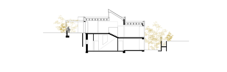 Wir trafen auf einen klassischen Bungalow in Hanglage aus den 70iger Jahren, eine durchdachte und abwechslungsreiche Grundstruktur aus Mauerwerks- und versetzt angeordneten Deckenscheiben. Dieses Gefüge war jedoch durch zahlreiche Einbauten überformt und seiner vermutlich ursprünglichen Klarheit und Leichtigkeit beraubt. Insgesamt wirkte das Haus ein bißchen aus der Zeit gefallen, kühl und düster.