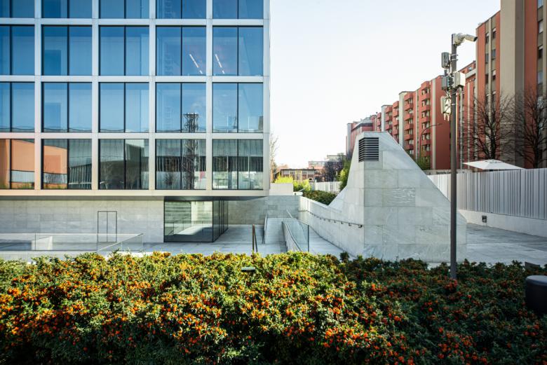 Having thus freed up the space, we redesigned it through the construction of a large garden, and the construction of a new nine-story office building, with some floors and functions placed below ground level: a two-floor garage, a photographic archive and a connecting tunnel linking the production workshops.
