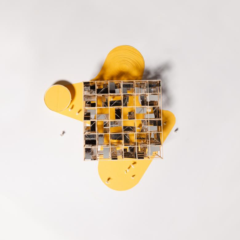 The pavilion's geometric abstraction qualify it as a stage intended to host a multiplicity of ever-changing events, such as the variations of the light that it will be able to reflect. A kaleidoscopic structure that reflects and amplifies activities, people and colors.