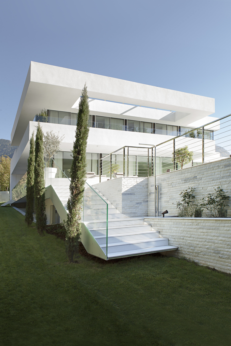 Realizzata nella tranquilla zona residenziale Obermais a Merano, Villa M si distacca nettamente dalla tradizionale architettura “di montagna” fatta di pietra, legno e tetti spioventi.