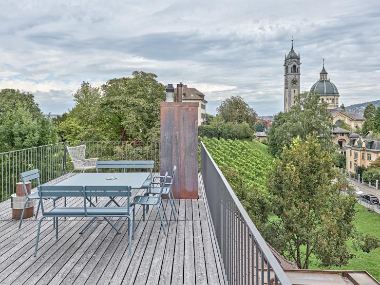 Das historische Mehrfamilienhaus aus den frühen 1920er Jahren befindet sich als Teil der Überbauung ‚Auf dem Bürgli’ inmitten der Grünanlagen Rieterpark und Belvoirpark in Zürich-Enge. Es zeichnet sich durch eine wohlproportionierte Architektur mit zurückhaltenden, eklektischen Elementen aus. Nachdem 2015 ein Weihnachtsbaum Feuer fing, wurde die Nutzung des Hauses überdacht und die Grundrisse flexiblen, zeitgenössischen Wohnformen angepasst. In einer ersten Etappe wurden die unteren Geschosse sowie die Fassade sanft umgebaut, um ihre Attraktivität als Familienwohnungen nicht zu verlieren. Nau2 wurde 2017 beauftragt, das 2. Obergeschoss zusammen mit dem Dachgeschoss zu einer grosszügigen Wohnung mit Dachterrasse umzubauen.