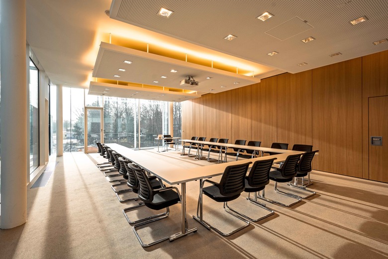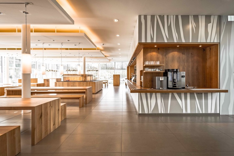 Update für die Hauptverwaltung aus den 70er Jahren. Mit der Entkernung des alten Treppenhauses entsteht eine lichtdurchflutete Achse zum Erweiterungsbau des Konferenzzentrums. Bereits am Haupteingang wird der Besucher von einer skandinavisch anmutenden Farbstimmung aus hellen Sandtönen und Weiß in Empfang genommen. Die abstrahierten Pflanzentexturen der Fassadengestaltung – Sinnbild für den Unternehmensbereich Garten & Hobby – finden sich als Ornament in der Wandgestaltung wieder.