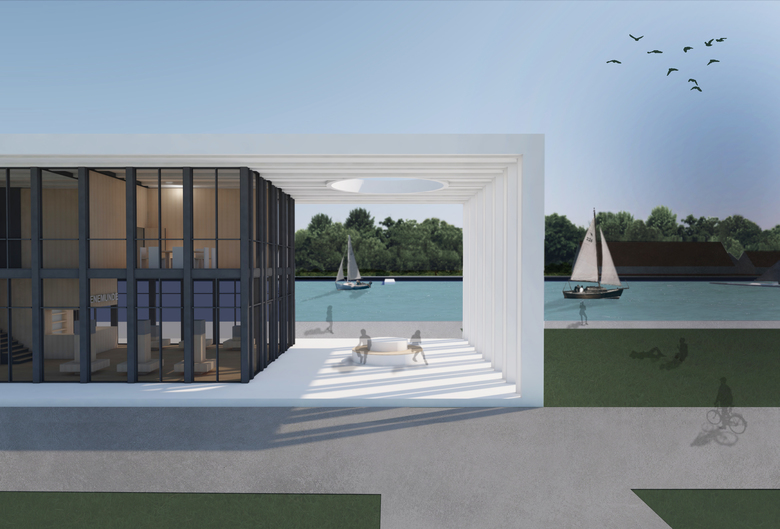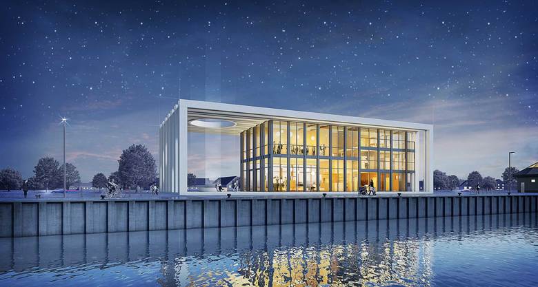 Ein „Haus für Alle“, als neuer Eingangsbereich für das Historisch Technische Museum. Das Zusammentreffen von Vergangenheit Gegenwart und Zukunft an diesem historischen Ort soll sich im konzeptionellen Ansatz, in der Architektursprache und in der Materialität des Neubaus wiederspiegeln. Ein transparentes modernes offenes Haus. Das Entwurfskonzept entwickelt eine klare städtebauliche Geste als Kreuzungspunkt von Hafenpromenade und Eingangsachse zum HTW. An diesem Kreuzungspunkt entsteht mit der Rahmenkonstruktion des Daches ein „Fenster zum Hafen“. Ein Fenster in zwei Richtungen: Einmal das Fenster vom Hafen In Richtung zum Ausstellungsgelände des Historisch Technischen Museums. Zum Anderem das Fenster von Peenemünde hinaus in die Welt.