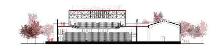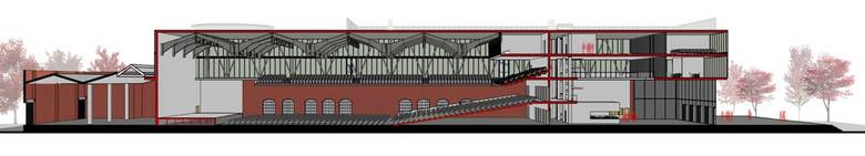 In der differenzierten Auseinandersetzung und Verbindung von NEU und Alt liegt die Herausforderung der Aufgabe. Der Verfasser nutzt die historischen Mauern als Basis für einen transparenten Ergänzungsbau. Der gläserner Riegel legt sich parallel zum Rhein auf das Gebäude und bildet damit hinter der Kleinteiligkeit der Mauerwerksgiebel der Hallenschiffe die neue Nutzung des Gebäudes als Veranstaltungshalle mit gegebener Fernwirkung ab.