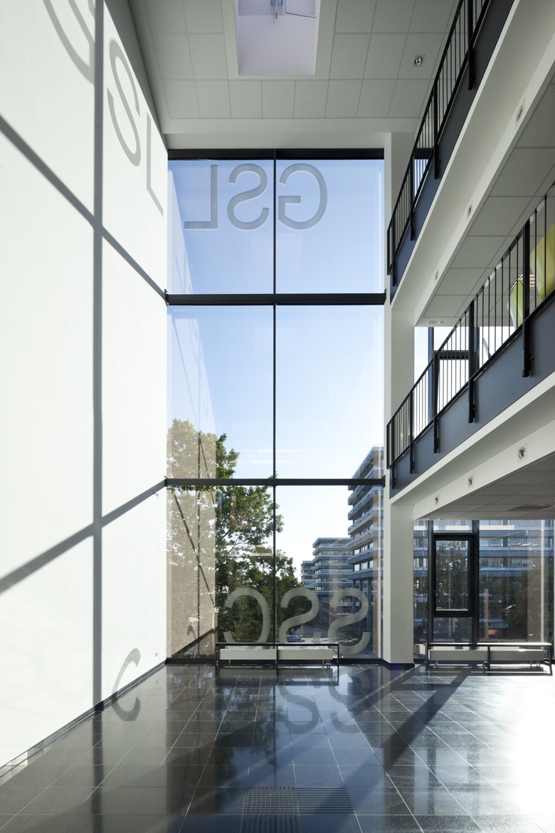 Nutzungsbereich GSL mit Seminar- und Bibliotheksbereich, sowie eine eigenständige Seminarebene. Die Bebauung bildet das Auftaktgebäude für die in Zukunft geplante Neuordnung der Zentralachse der Ruhr-Universität. Eine Gebäudekubatur mit zwei gegeneinander versetzten Riegeln die mit einer zentralen Erschließungshalle als Gelenkpunkt miteinander verbunden sind, bildet das Konzept des Neubaus. Eine nachhaltige Bauweise wird durch einen besonders flächensparenden Baukörper mit absolut minimiertem Gebäudegrundriss erreicht. Eine Lüftungsanlage mit Wärmerückgewinnung, Nachtlüftung sowie eine belegungsabhängige Kühlung und Lüftung führt zu einer erhöhten Energieeffizienz. Weitere Energieoptimierungen werden durch die übergeordnete Gebäudeleittechnik (GLT) erreicht. Die Stahlbetonskelettbauweise bildet mit den Wand- und Deckenfertigteilen zudem eine flexible/wirtschaftliche