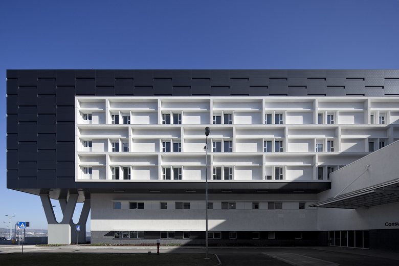 The new hospital at Loures, a municipality to the north of Lisbon, is located in a growing part of this city. The building is in two rectangular bodies, related by means of a sequence of internal patios, perpendicularly interlinked by three volumes. The main entrance is marked by a large covered plaza with the pedestrian routes in the area.
