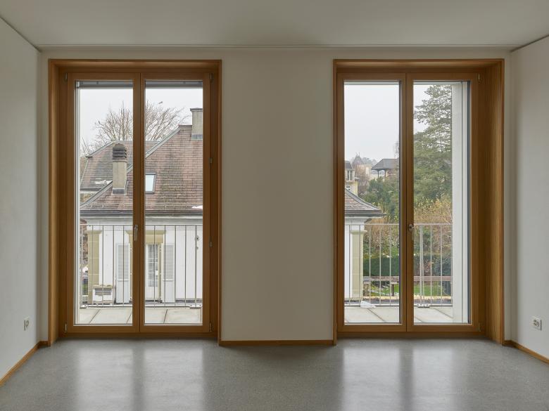 Drei südseitige Innenhöfe verwandeln die ehemaligen grossflächigen Druckmaschinenräume im Erdgeschoss und im Untergeschoss in attraktive und lichtdurchflutete Büroräumlichkeiten. In den drei Obergeschossen werden 10 neue Wohnungen gebaut. Eine umlaufende Balkonschicht, eine grosszügige Dachterrasse und der Zugang zu den Flachdächern über den Büroräumen bieten allen Wohnungen grosszügige Aussenflächen.