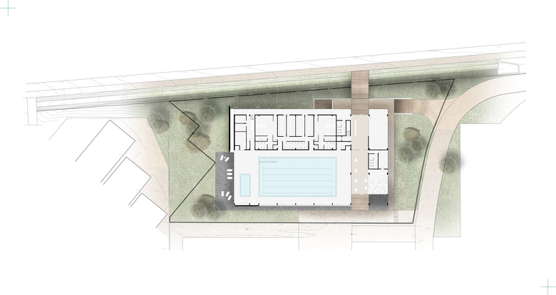 The project proposes a system that defends the urban scale of the complex. In this sense, the whole complex serves as connection between the two municipal urban sprawls. At a more intermediate scale, the building containing the wet areas is used to redefine the access and centrality of the spaces constituting Ciudad Deportiva (Sports city) of Cártama. Finally, at the smallest scale the project aims to create a compact and energetically efficient building. A design for the user and with special care for a sustainable maintenance.