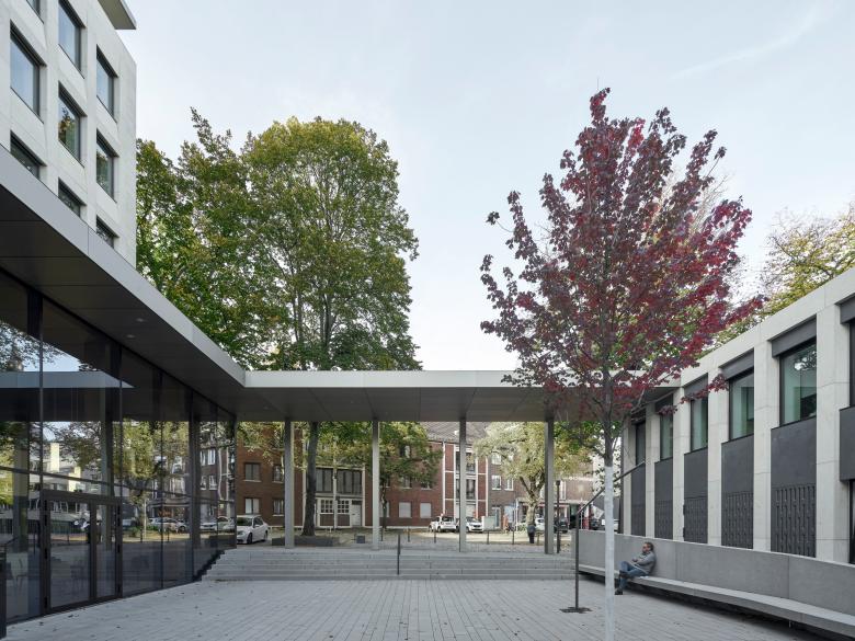 Das Bischöfliche Generalvikariat im Aachener Domviertel erforderte mit seiner Gebäudestruktur aus den späten 1950er Jahren eine umfassende Sanierung und Neustrukturierung. Mit der Umstrukturierung der Büroräume und der neuen Fassadengestaltung gelang es, die Bausubstanz nach zeitgemäßen Standards energetisch zu ertüchtigen, während die ursprüngliche Ensemble-Struktur lesbar bleibt. Die neue Fassade reagiert auf die besondere stadtbildprägende Lage des Gebäudes und fügt sich harmonisch ins Domviertel ein.