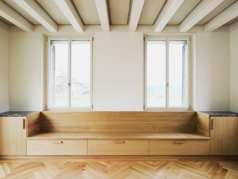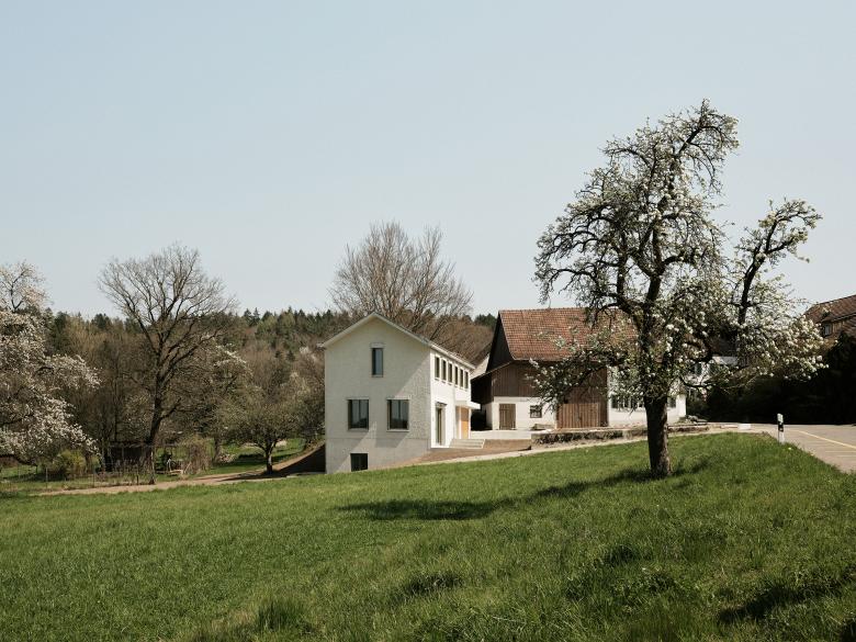 Eidbergstrasse – Planerwahlverfahren selektiv – Ein neues Einfamilienhaus in der Kernzone? Keine Scheune, kein Bauernhaus… Ein neuzeitlicher Typus, vertraut und doch eigenständig. Der Neubau befindet sich am Rand der Kernzone von Gotzenwil, einem Weiler nahe Winterthur. Gemeinsam mit einem der ältesten Mehrzweckbauernhäuser der Siedlung entsteht ein neues Ensemble, welches den prominenten Auftakt beim Ortseingang bildet. Über die Setzung, Volumetrie, die typologischen Elemente und die Materialität fügt es sich in den Kontext ein. Gleichzeitig verortet sich das neue Haus selbstbewusst in der heutigen Zeit.