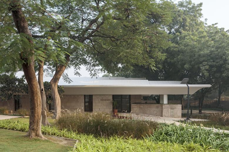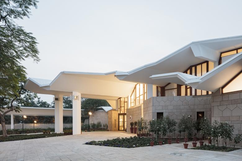 Architects Reima and Raili Pietilä won the competition for the Finnish Embassy to be located in the diplomatic enclave in Chanakyapuri in 1963 with a beautiful and powerful competition entry called “Snow speaks on the mountains”. The project was commissioned and redesigned based on the original concept in 1980, and the building was finally opened in 1986 with the large single expanse of roof of the 1960's design broken up into the six lateral separate buildings standing on the embassy compound today.