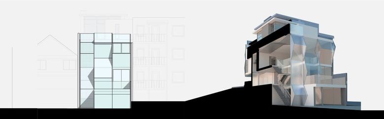 The Design. A complete flip of the home’s façade and interior spaces that reinvents its typology and captures all advantages of its natural and urban site.