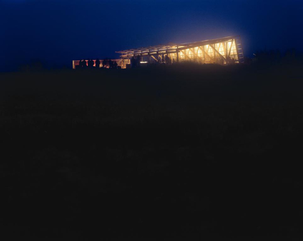 The Ghost Lab is an architectural education center in the apprenticeship tradition of Frank Lloyd Wright’s Taliesin, which began in 1994. The permanent structures, which now occupy the site among the ruins – tower, studio, cabins and barns – are, in part, products of the design/build curriculum itself. They provide accommodation for the program and a venue for community events. Each component started as a two-week project; from design, to foundation, to sheathing. The tower, which marks the south corner of the courtyard, and the barn, are sited just outside the fence and are built on wood post foundations. The studio and four cabins inside the fence are heated structures on concrete foundations. Each of the cabins is a 700 square foot, two bedroom structure comprised of a ‘servant’ box and a ‘served’ shed, clad in eastern cedar shingles. The 90 foot long, metal clad studio is dominated by a 40 foot worktable and a 72 foot totemic cedar cabinet. The 72 foot barn contains an equipment shed and free stalls for horses, while creating a second working courtyard. The reconstructed, historic Troop Barn supports gatherings. The resulting campus is an expression of utopian architectural ambitions despite being constructed with modest means. From an environmental perspective, the campus is a relatively dense compound, conserving the surrounding landscape for agriculture.