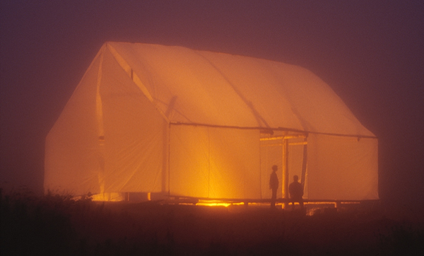 The courtyard makes a south-facing microclimate which complements the passive solar structures. All structures are constructed of local technology and local renewable materials from nearby sawmills. The court refers both to the environmental common sense of the simple barnyard, and a proto-urban aspiration. By ‘listening’ to the site’s rich history and local material culture traditions, yet ‘willing’ buildings which are clearly modern, the Ghost Lab is a built critical regionalist argument.