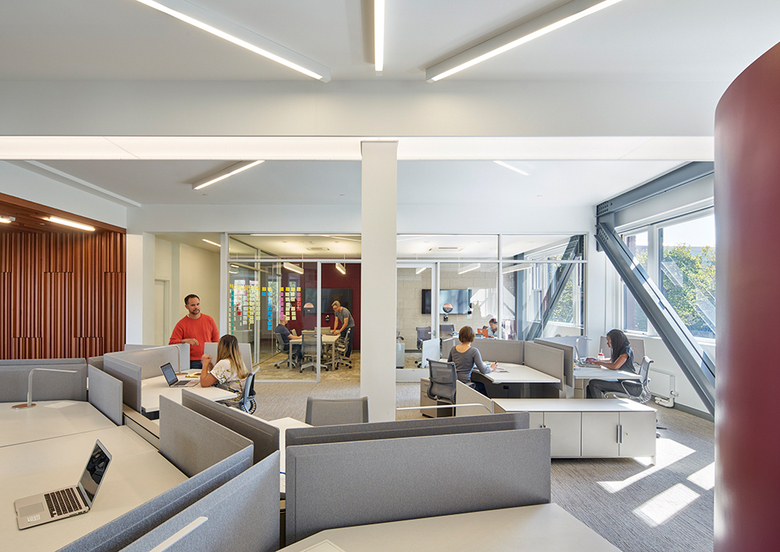 For its new headquarters, The Kapor Center commissioned a design competition to transform an existing 1920s-era office building in downtown Oakland into innovative workspace. The Kapor Center for Social Impact works to improve access to opportunity, participation and influence in the United States for historically underrepresented communities through investments in information technology and partnerships with nonprofits. The new headquarters had to be an architectural manifestation of the Kapor Center’s core values: connectivity, openness, and democracy.